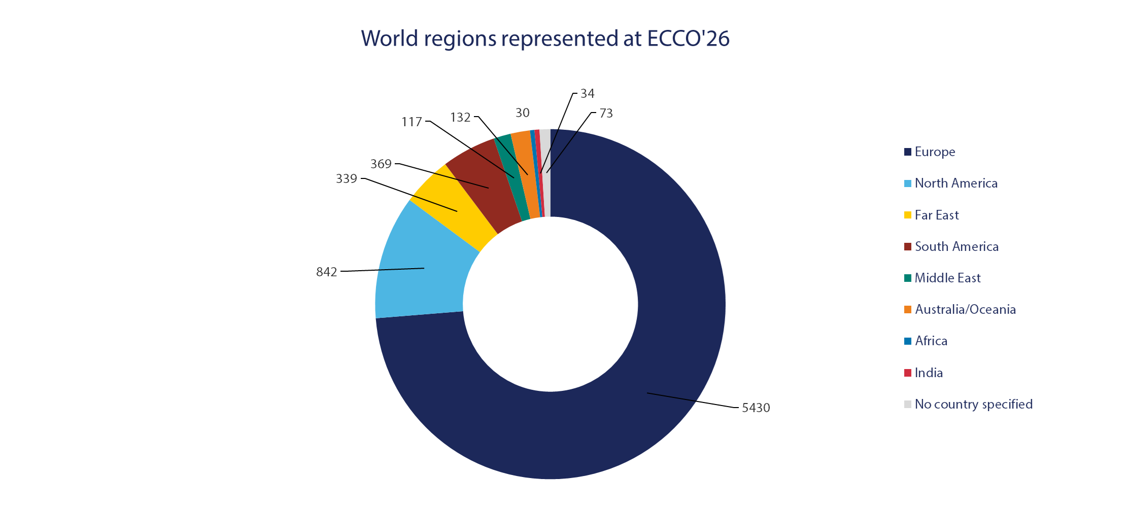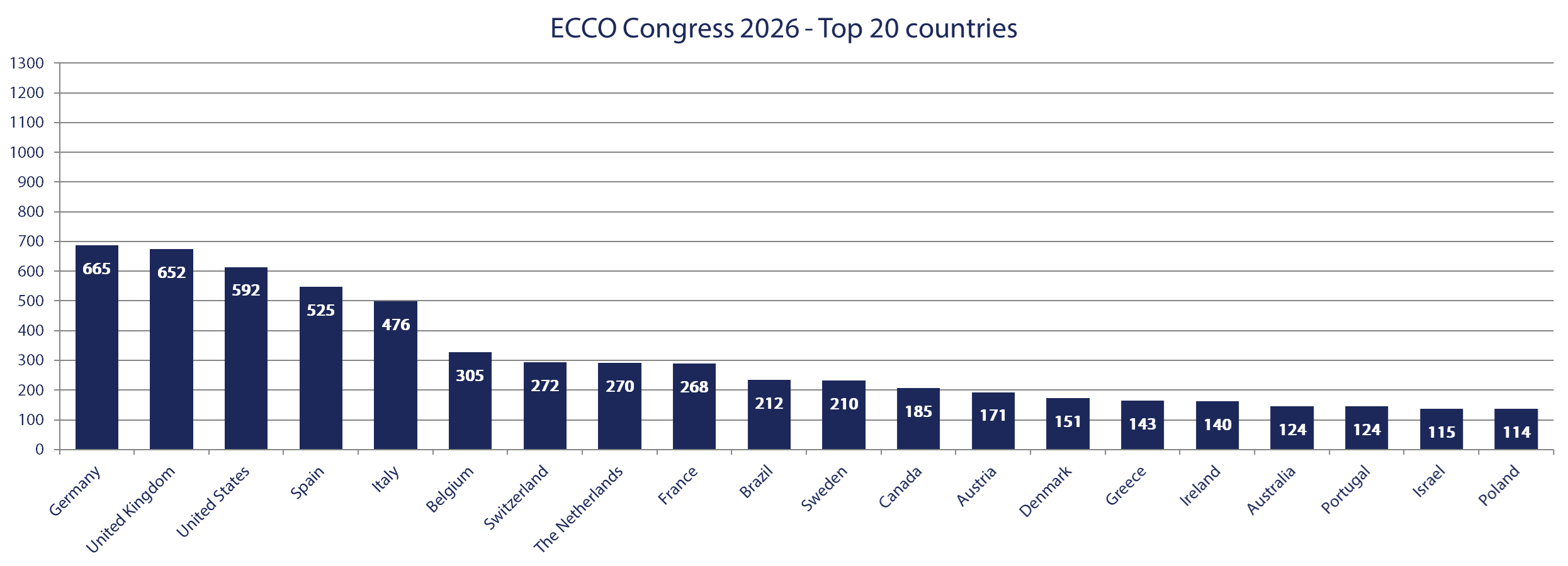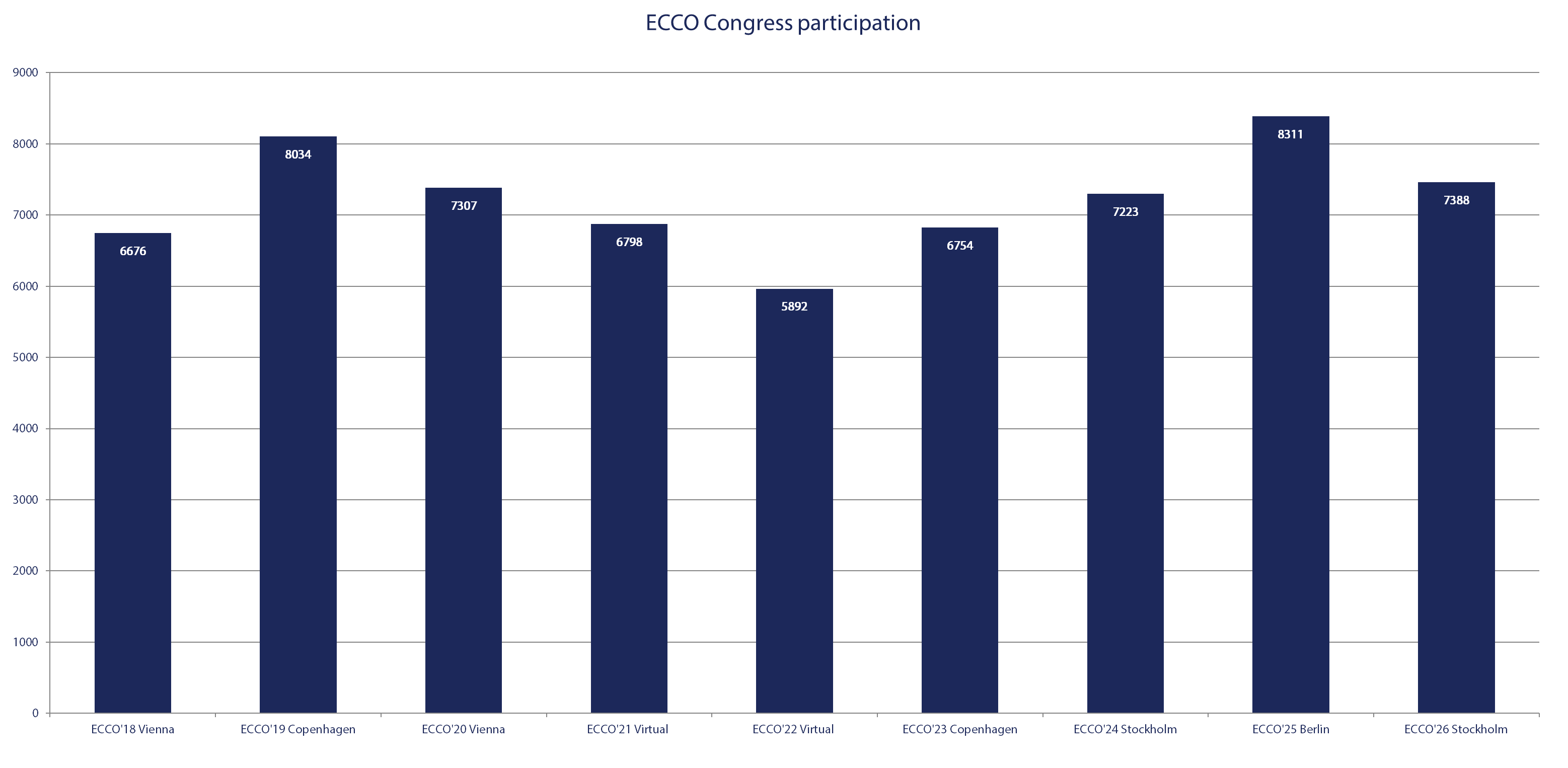 The 21st Congress of ECCO, Stockholm, Sweden – Inflammatory Bowel Diseases 2026, held on February 18-21, 2026, attracted a total number of 7,388 delegates from 99 different countries. Since the inaugural ECCO Congress in 2006 in Amsterdam, at which there were 350 delegates, participant numbers have steadily increased. We are pleased that such a high number of delegates were able to take part in the ECCO’26 Congress in Stockholm.